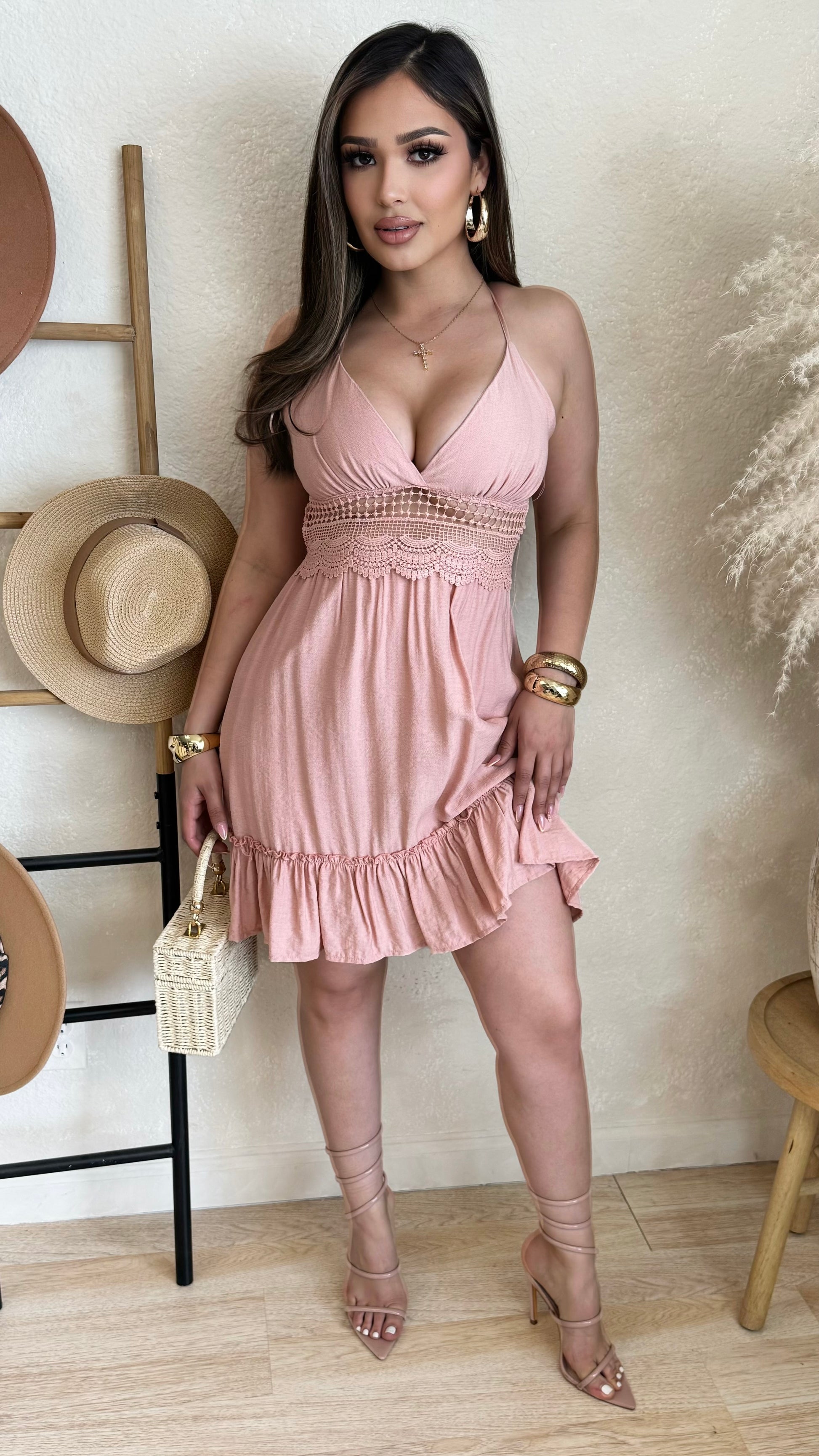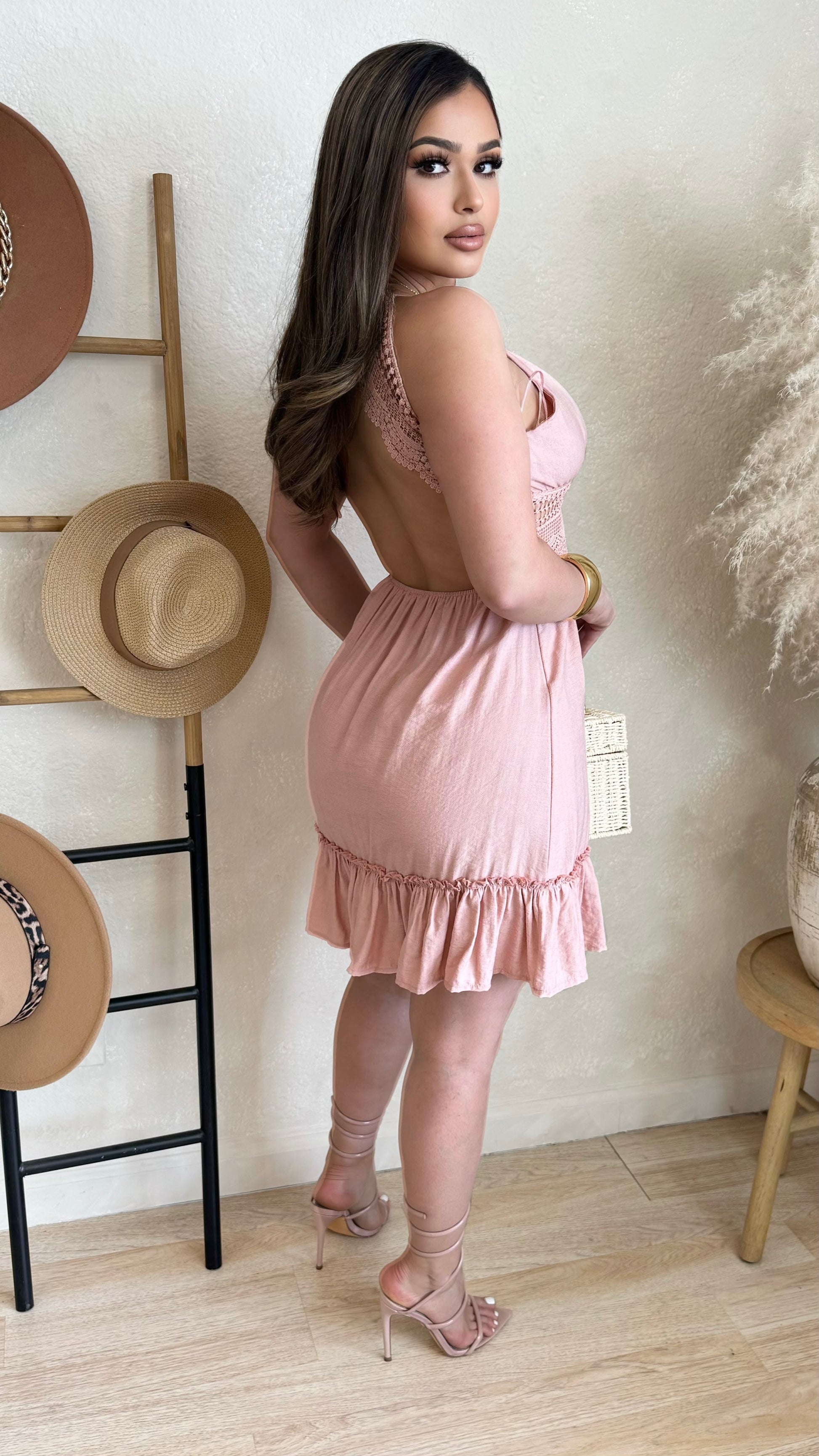 Damileth Flowy Backless Dress (Blush)