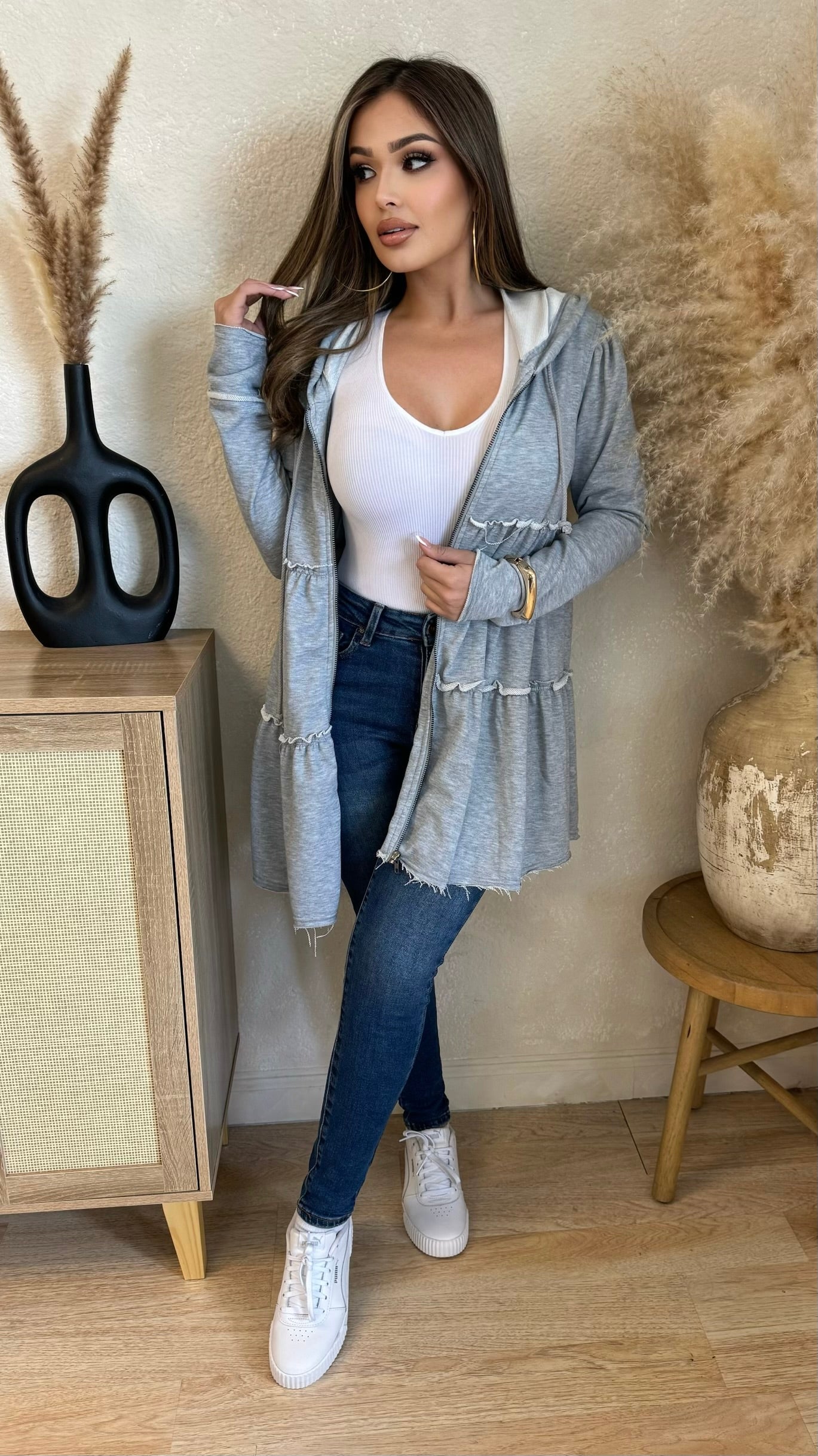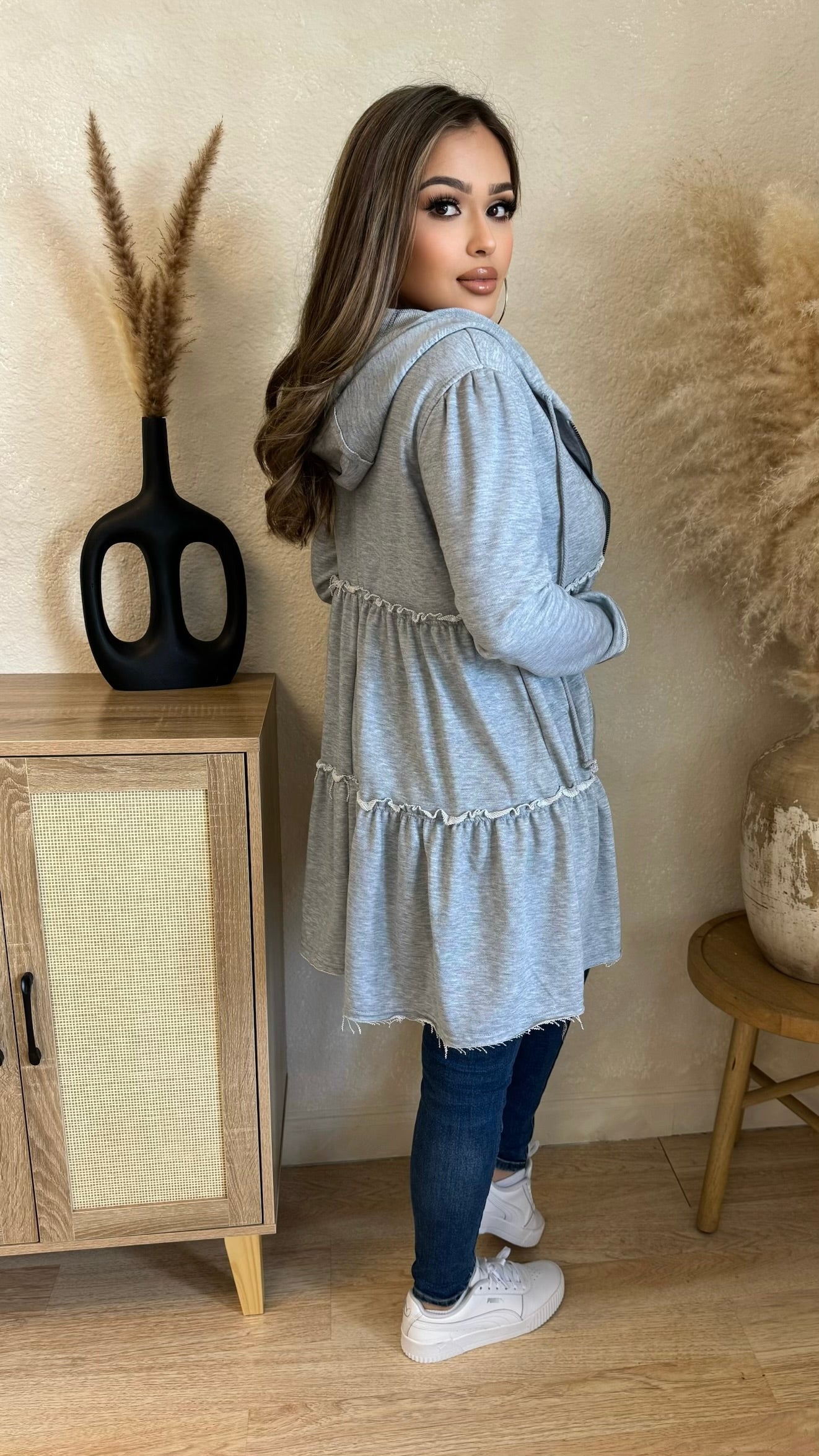 Danielle Zip Up Oversize Ruffle Sweater (Dusty Grey)