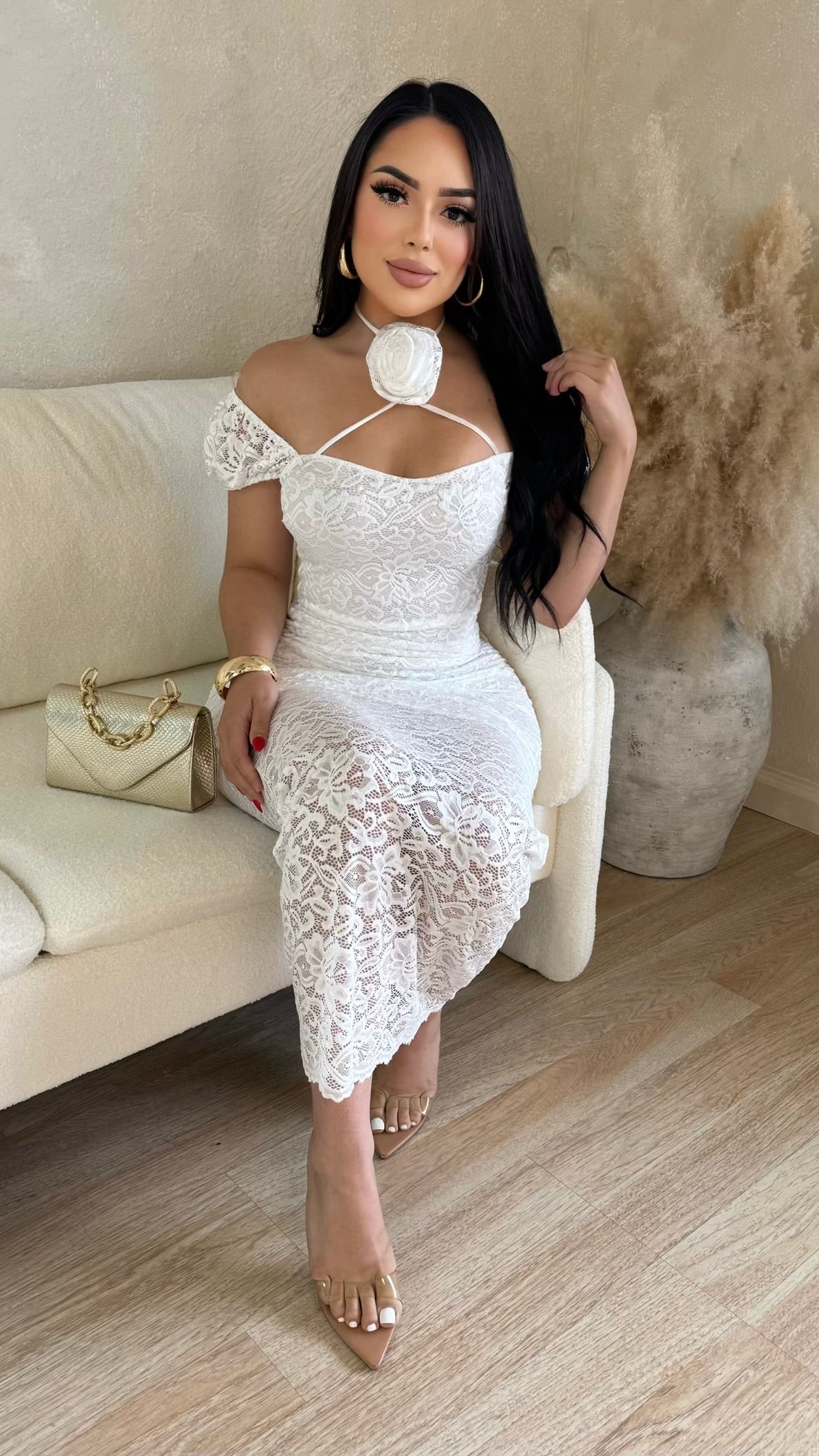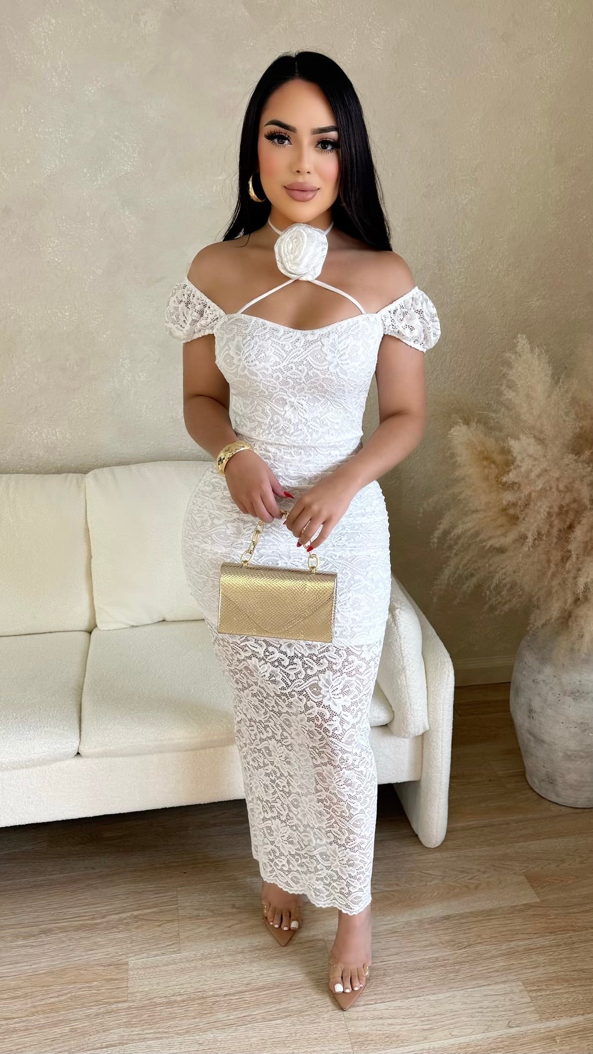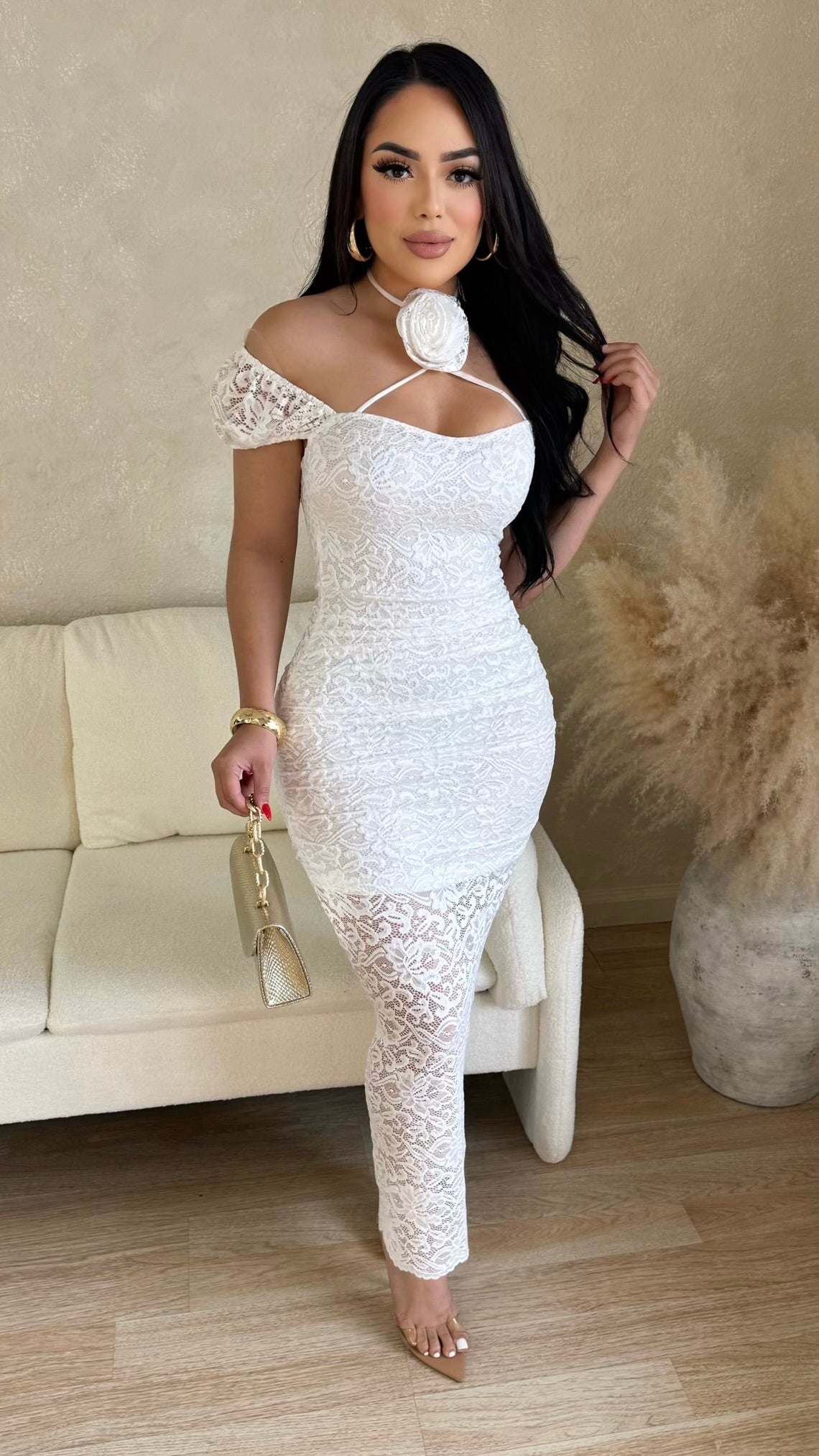 Looking Spectacular Lace Maxi Dress (White)
